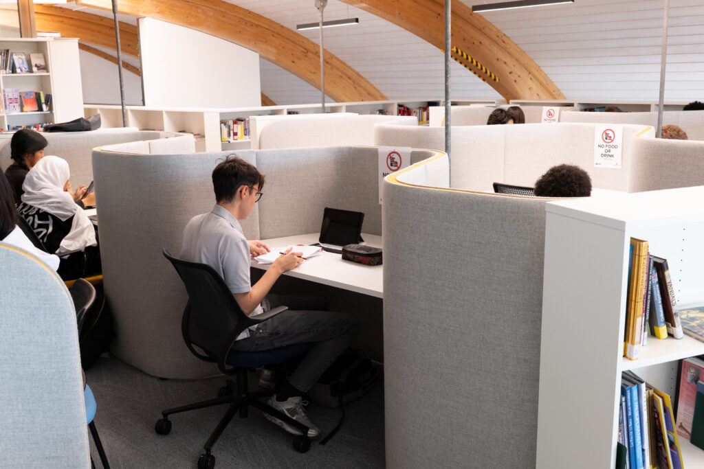 The ambition was to create a space that encourages focus, collaboration, and wellbeing while reflecting the school’s strong sense of community. Through workshops and discussions with staff and students, the project team explored how the library could better support independent study, group work, and moments of quiet reflection.